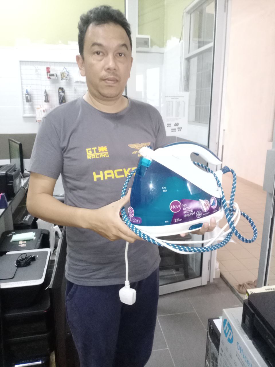Iron plate panas tetapi tidak mengeluarkan wap.